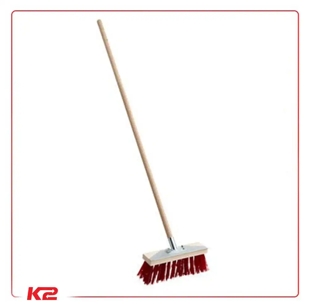 Le manche est solidement fixé au balai grâce à une douille métallique vissée, assurant un maintien solide. Sa conception robuste et fiable vous permet de balayer efficacement les débris, les feuilles et la saleté sur diverses surfaces extérieures.
