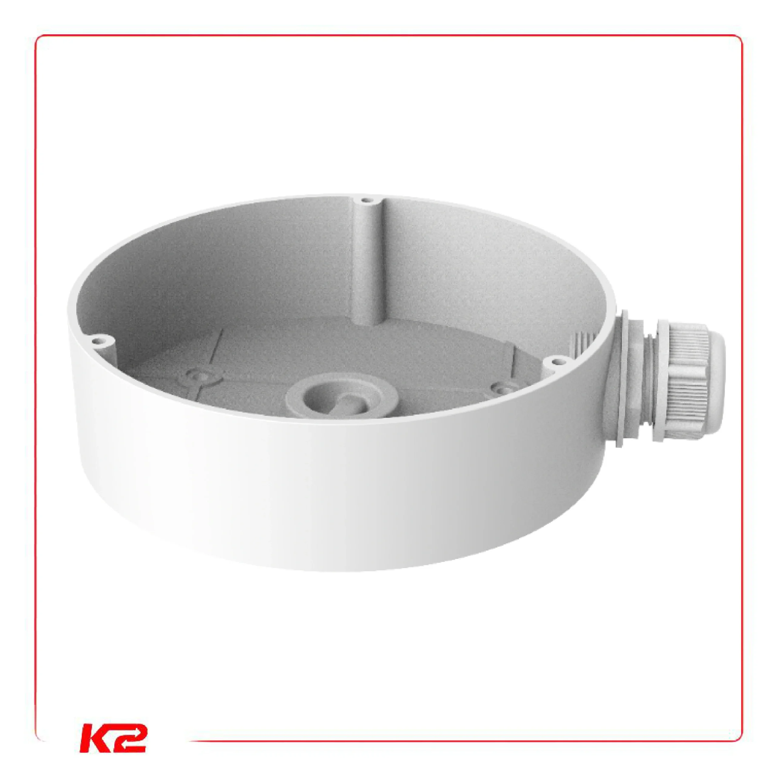 Cette boîte contient une entrée latérale et une entrée inférieure pour simplifier l’installation des équipements relatives aux caméras dômes. Grâce à son couvercle étanche inférieur interchangeable et son écrou de presse-étoupe latéral, l’installation de cette boîte garantie une fixation idéale.