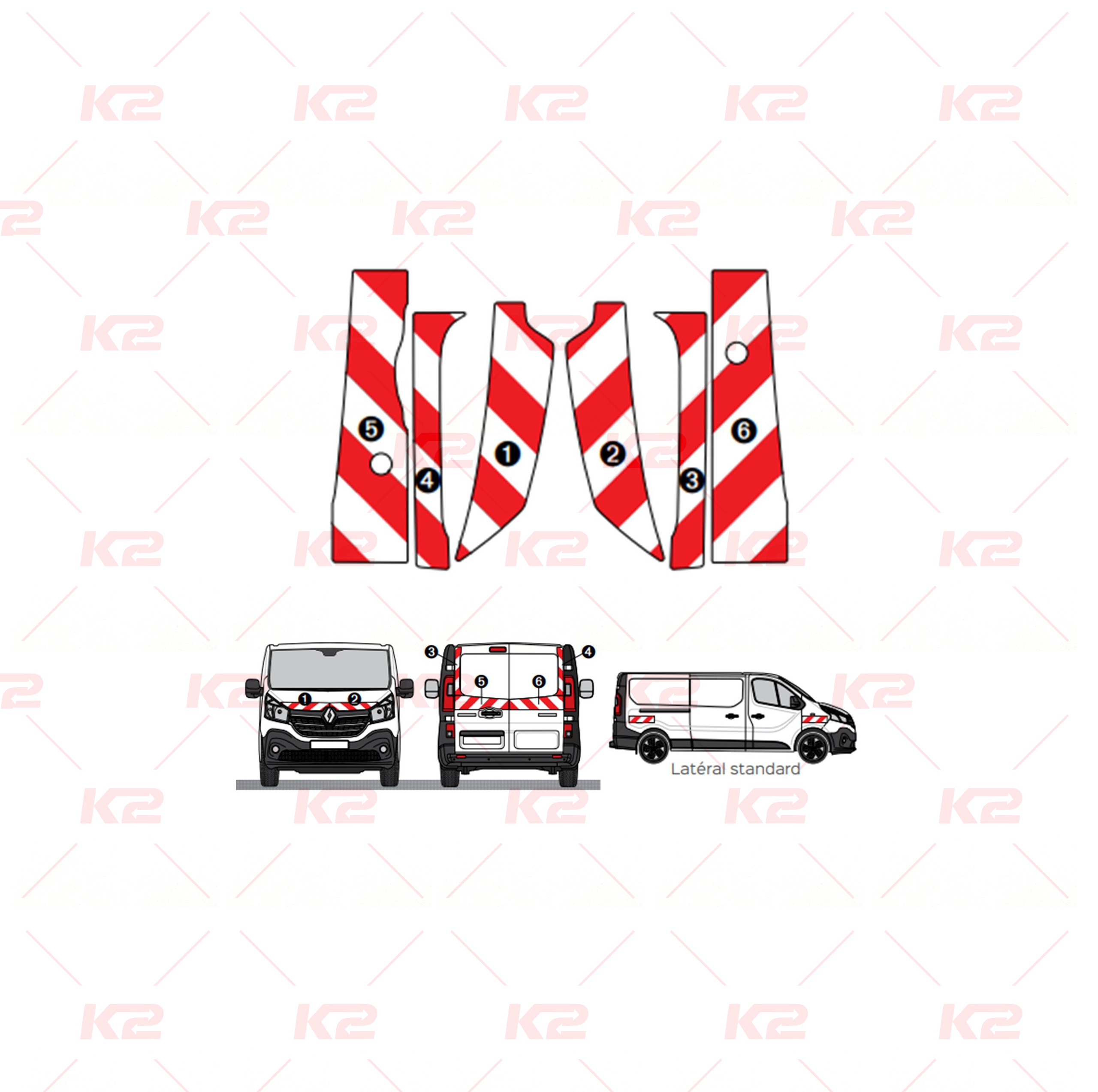 Kit balisage dédié au Renault Trafic, incluant des bandes rétroréfléchissantes à microbilles,