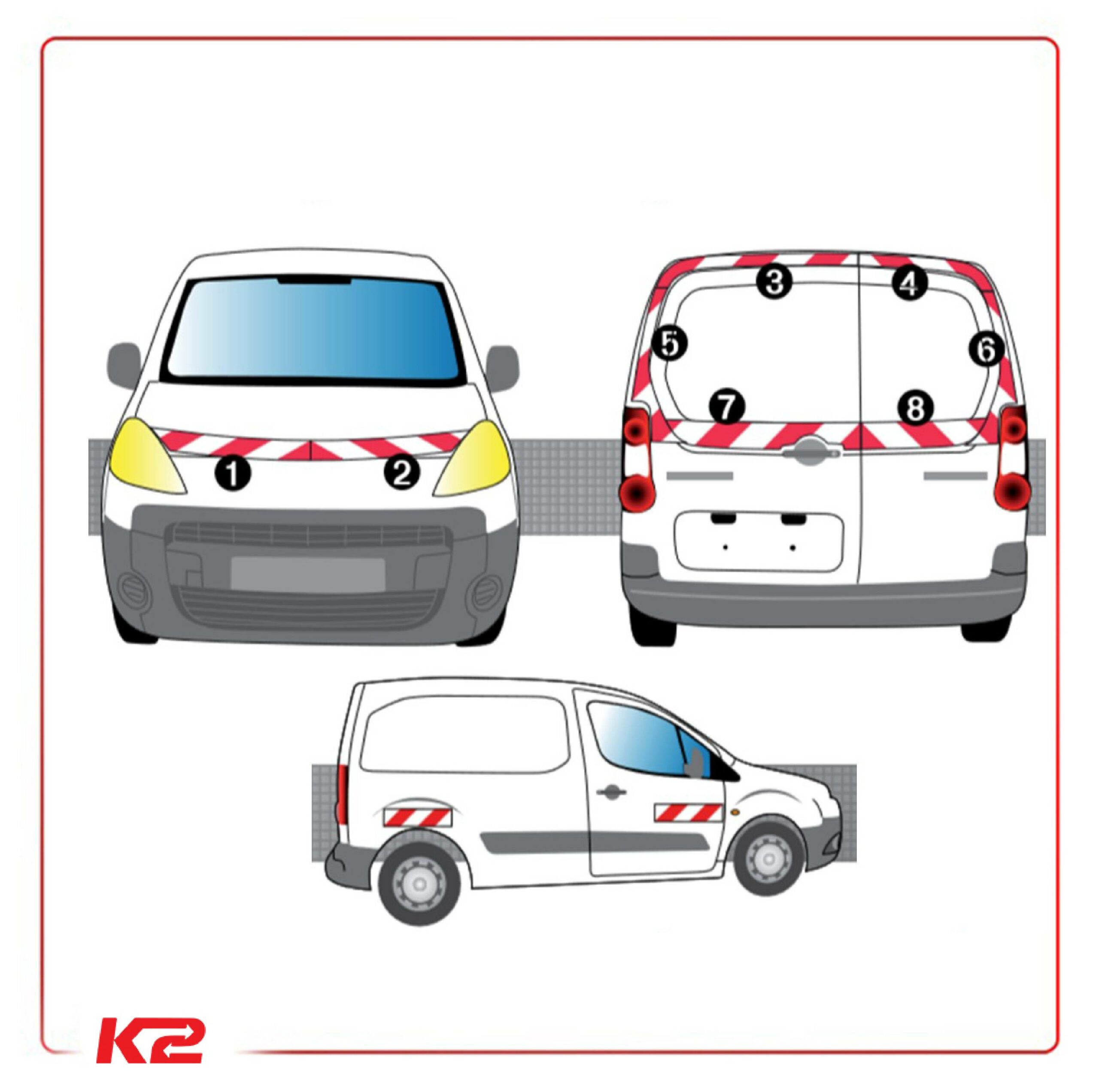 Votre véhicule Citroën Berlingo de travaux, de service ou de chantier est concerné du moment qu’il est amené à circuler sur la voie publique. Ce Kit de balisage composé de bandes réfléchissantes adhésives de 3M coupées sur-mesure pour une protection optimale de votre véhicule utilitaire, d’une notice de pose et d’une raclette pour faciliter la pose. Il comprend 2 bandes horizontales + 2 bandes verticales à l’arrière, 2 bandes horizontales par face latérale et 2 bandes horizontales à l’avant.