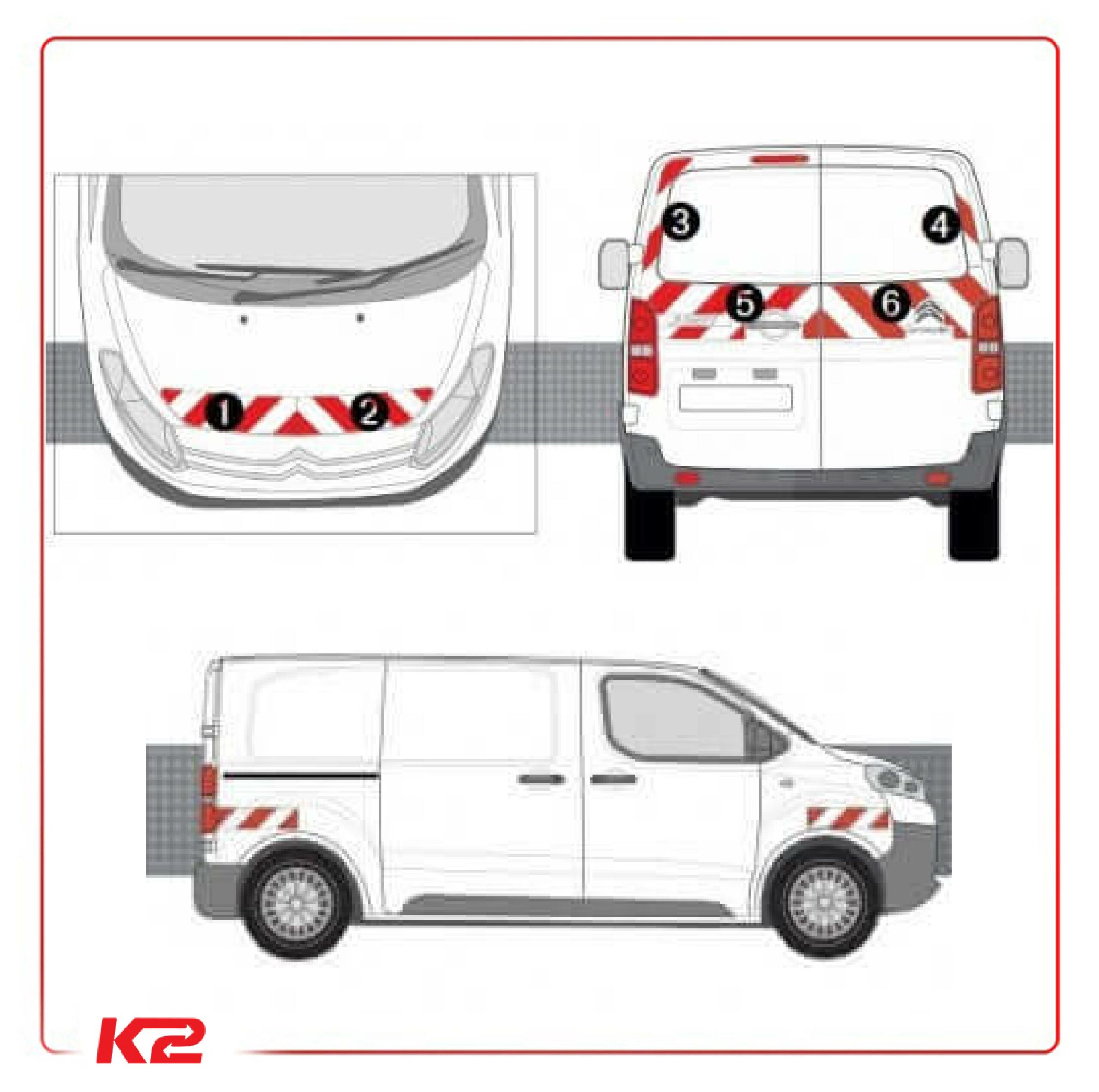 Votre véhicule Citroën Jumpy de travaux, de service ou de chantier est concerné du moment qu’il est amené à circuler sur la voie publique. Ce Kit de balisage est composé de bandes réfléchissantes adhésives de 3M coupées sur-mesure pour une protection optimale de votre véhicule utilitaire, d’une notice de pose et d’une raclette pour faciliter la pose. Il comprend 2 bandes horizontales + 2 bandes verticales à l’arrière, 2 bandes horizontales par face latérale et 2 bandes horizontales à l’avant.