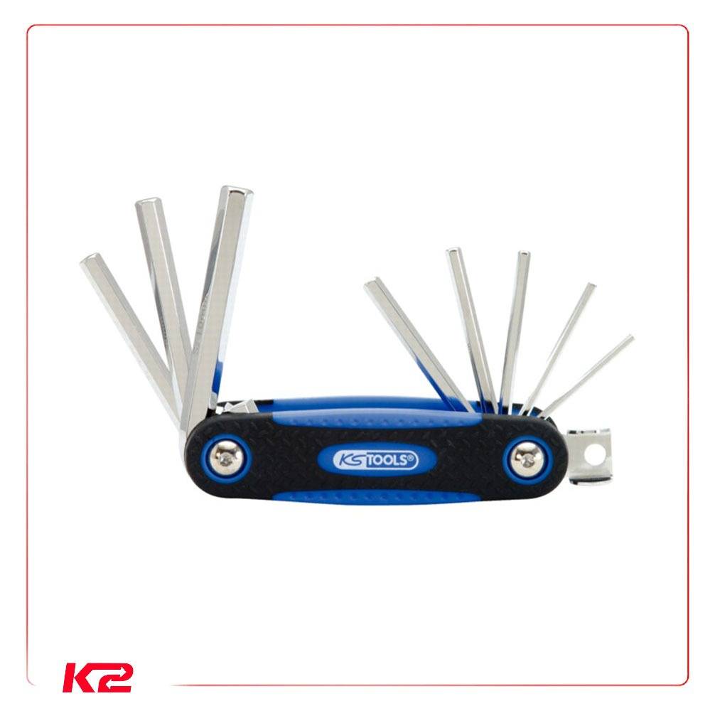 Ce Jeu de 8 clés mâles 6 pans sur monture KS Tools est en acier trempé avec une monture bi-matière.