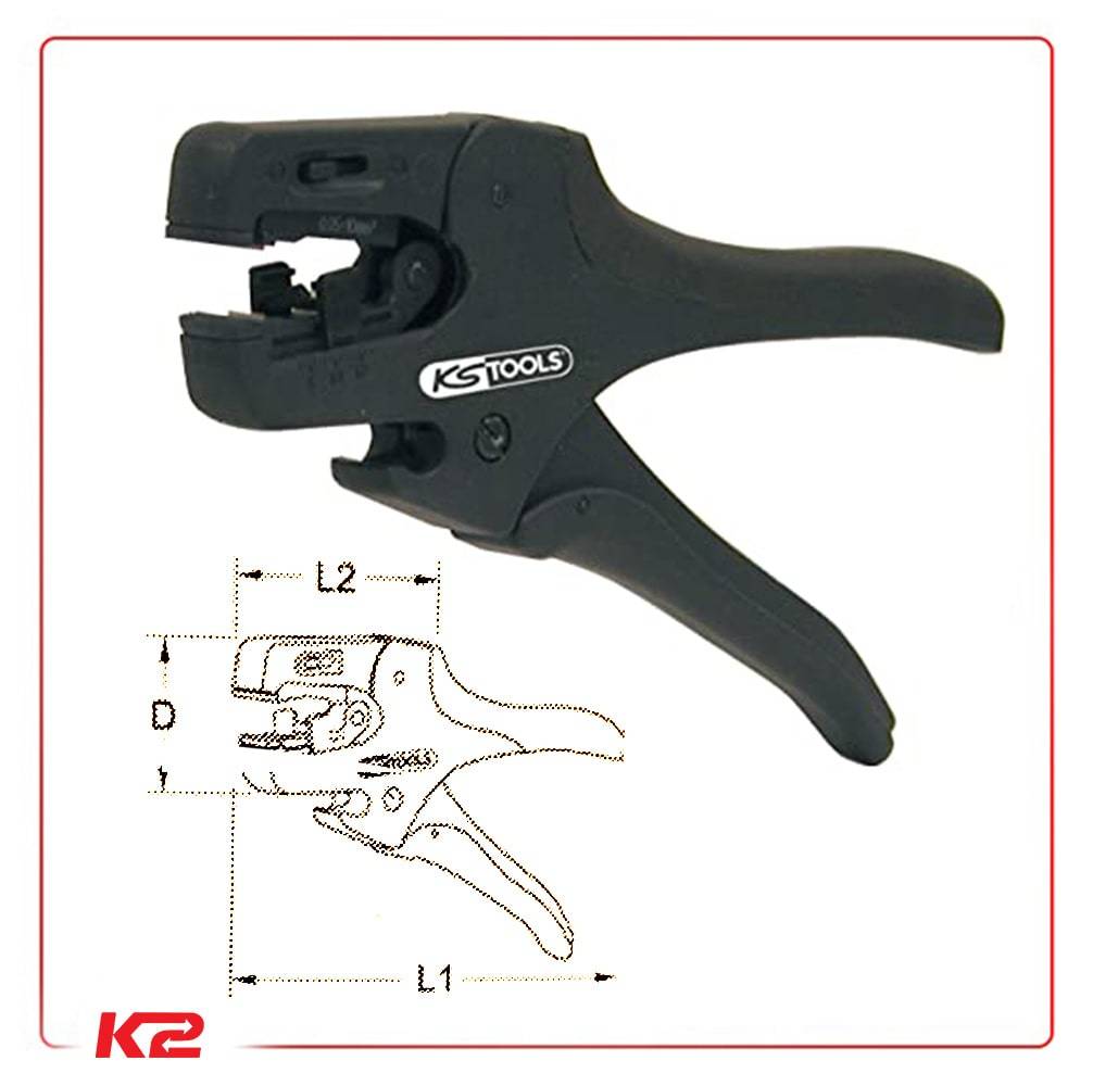 Cette pince à dénudage automatique est disponible chez K2 en couleur noire avec une longueur de 200 mm.